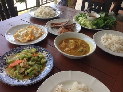 ข้าวแกงเมนูหลากหลาย น้ำพริกกะปิติดเปรี้ยวไปหน่อย สั่งข้าวราดแกงเผ็ดปลากับหมูทอด ใช้ได้ค่ะ ต้มมะระหมูสับร้อนๆ คือดีเลย มีผักสดกับน้ำพริกให้ด้วย น้ำเปล่าบริการฟรี มีห้องน้ำสะอาดให้บริการ ที่จอดรถเพียบจ้าดูเพิ่มเติม