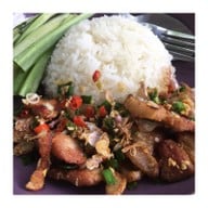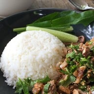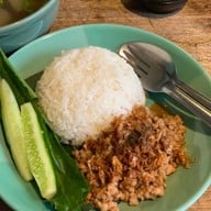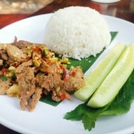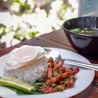 ร้านอาหารตามสั่งง่ายๆขายกันในบ้าน ฟีลนั่งทานในสวนหน้าบ้าน ราคาไม่แรงมาก เมนูเยอะดีค่ะ •ข้าวแมว(95฿) 🌕🌕🌕🌑🌑 -ข้าวสวยคลุกกับปลาทูใส่พริกหอมแดง -น้ำพริกที่เสิร์ฟมามีรสอมเปรี้ยวแล้วเพิ่มรสชาติ •คอหมูย่างคั่วพริกเกลือ(130฿) 🌕🌕🌕🌑🌑 -คอหมูย่างเนื้อๆมาหน่อย -ผัดพริกเกลือเค็มนำเผ็ดนิดๆดูเพิ่มเติม