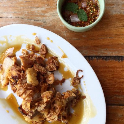 รีวิวที่แนะนำ หมูสามชั้นทอดราดน้ำปลา