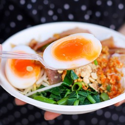 เมนูสุขภาพ จะคลีนก็ว่าได้ "ผักบุ้งไต่ราว" เป็นผักบุ้ง ถั่วงอกลวกและแตงกวา มีเครื่องเคียงคือปลาหมึกกรอบ ไข่เป็ดยางมะตูม และเส้นหมี่ โรยด้วยถั่วลิสงคั่วเอง ราดน้ำออกรสหวานหน่อยๆ ตัดกับพริกน้ำส้มเข้มข้น เข้ากันดีมาก ราคาอยู่ที่ 35-45บาทดูเพิ่มเติม