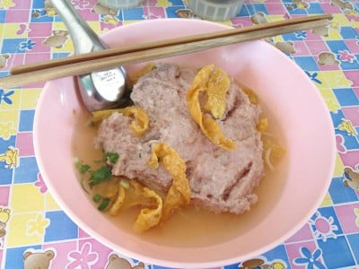 ก๋วยเตี๋ยวท่าใหม่ ร้านเด็ดที่อำเภอท่าใหม่ ถ้าใครมาที่จันทบุรีอยากจะแนะนำให้มา ทีเด็ดอยู่ที่เส้นบะหมี่ที่เข้าใกล้ความเป็น Fettucine และกุ้งลายเสือตัวใหญ่เนื้อเด้งที่สะดุ้งน้ำร้อนมาพอสุก กัดแล้วจมเขี้ยว ถ้าใครชอบหมูเด้ง อันนี้ถือเป็นหมูเด้งที่ดี (เราไม่ค่อยใช่แฟนหมูเด้งเท่าไหร่) ปลาหมึกกับลูกชิ้นเฉยๆ ค่ะ สั่งต้มยำแห้งมา รสชาติหวานไปหน่อย คราวหน้าคงต้องสั่งหวานน้อย น่าจะได้รสชาติที่พอดี : ) ตรงข้...อ่านต่อ