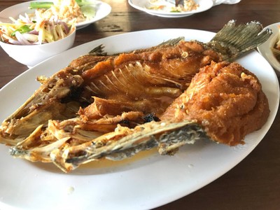 รีวิวที่แนะนำ ปลากระพงทอดราดน้ำปลา