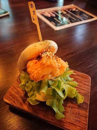 Hotto Bun ร้านบันสไตล์ญี่ปุ่น ที่มาเปิดในมหาวิทยาลัยเกษตร ร้านตั้งอยู่ตรงแถวๆโรงเรียนสาธิตเกษตรเลยคะ หาไม่ยาก ภายในร้านมีที่นั่งเยอะพอสมควรแต่แขกที่มาทานก็เยอะเหมือนกัน เราไปวันเสาร์คนเข้ามาเยอะพอสมควรเรื่อยๆ แต่ก็นั่งสบายๆไม่มีแออัด มีไวไฟและปลั๊กพร้อมด้วยนะคะ ดีจริงๆ มาเปิดกันด้วยเมนูทานเล่นกันหน่อย - เชคฟราย (55.-) ตัวฟรานไม่อมน้ำมันดีคะ โอเคเลยชิ้นใหญ่ๆแบบนี้เราค่อนข้างชอบมาพร้อมกับดิปที...อ่านต่อ