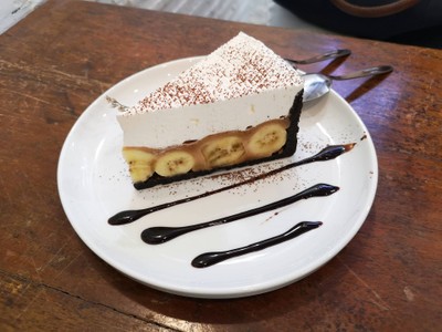 มา Cafe Hopping ที่ Renovate • Espresso Bar ร้านนี้น่าจะดังสุด ฮิปสุดในสุราษฎร์ฯ ละ Banoffee อร่อยดี ปกติไม่ค่อยชอบกินกล้วยเท่าไหร่ เค้กดูดี หน้าตาน่ากินหลายอัน อ่านรีวิวมาเค้าบอกร้านนี้กาแฟเด่น แต่ลองแล้วยังเฉยๆ หรือเพราะกินแบบเย็นก็ไม่รู้นะ (iced coffee kills baristas ว่าซั่น) แต่ร้านที่ทำกาแฟเย็นได้ดีก็มีนะ ไว้วันหลังจะลอง Hot Coffeeดูเพิ่มเติม