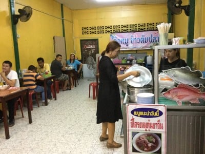 ร้านนี้อยู่ไม่ไกลจากบ้านค่ะ มีคนบอกมาว่าอร่อย เลยมาลองชิมดู เลือกชิมข้าวต้มปลา ชามละ 40 บาท ให้ข้าวน้อย เนื้อปลาเยอะดีค่ะ แต่เราว่ารสชาติธรรมดานะคะ ไม่ค่อยร้อนด้วย ข้าวก็เป็นแบบข้าวสวยใส่น้ำซุปอ่ะค่ะ คือฟีลมันไม่ใช่ข้าวต้มเท่าไหร่ เครื่องก็มีให้แต่ขิง สรุปเราว่าไม่ค่อยฟินนะคะ แต่ก็พอทานได้ค่ะดูเพิ่มเติม