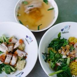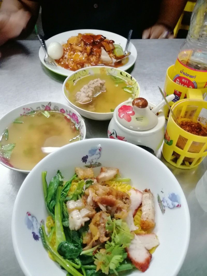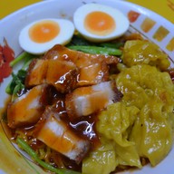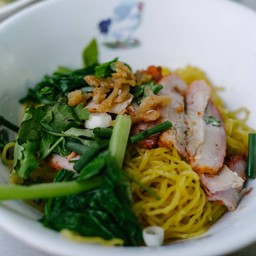 เมื่อก่อนเคยกินบ่อยมากเพราะใกล้บ้าน จนหลังๆ ย้ายบ้านนานๆ จะได้มากินที คราวนี้แวะมาเลยได้จัดบะมีเกี๊ยวแห้งของโปรด กินตัั้งแต่ชามละ 20 จนตอนนี้ 30-35 บาทแล้ว แต่ก็ยังต้องสั่งกลับบ้านไปเพิ่มทุกที ทีเด็ดอยู่ที่เส้นเหนียวนุ่ม กับหมูที่หมักน้ำผึ้งจริงๆ ตอนหลังมีเมนูข้าวหมูแดงหมูกรอบเพิ่มด้วย แต่ก็ยังสั่่งบะหมี่เหมือนเดิมดูเพิ่มเติม