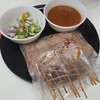 หมูสะเต๊ะเจ้าดังจากตลาด อ.ต.ก. มาเปิดสาขาที่ตลาดสดธนบุรี ขายดีมาก ปิ้งกันแทบไม่ทัน หมูสะเต๊ะขายไม้ละ 9 บาท หมูไม้ใหญ่อยู่นะ เนื้อหมูติดมันนิดๆ ฉ่ำกะทิ หอมนุ่มมากๆ น้ำจิ้มเข้มข้นเนื้อเนียน รสกลมกล่อม แกล้มด้วยอาจาดเข้ากันสุดดูเพิ่มเติม