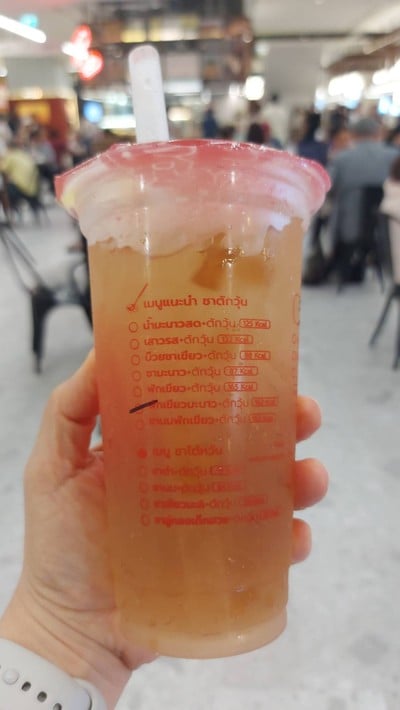 ร้าชาตักวุ้น ใน One Bangkok อยู่โซน อาหาร ชั้น B1 เป็น kios เล็กๆ มีชาหลายอย่าง เลือก ชาฟักเขียวผสมมะนาว L 29 บาท เพิ่มวุ้น 6 บาท รวม 35 บาท อยากดื่มชาฟักหอมหวานเหมือนชาฟักกระป๋องสีเขียวของคนจีน ก็เลยมาลองร้านนี้ดูว่าจะทำเหมือนหรือต่างกัน เราได้กลิ่นชาฟักแบบนั้นเหมือนกัน แต่ความเป็นมะนาวที่เพิ่มลงไปกลบนำอย่างมาก มีเนื้อฟัก นุ่มหวานหอมด้วย นิดนึง นานๆ เจอชิ้น แก้วนี้ก็สดชื่นมะนาว หวานฟัก ...อ่านต่อ
