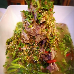 ร้านนี้ มาบ่อย ตั้งแต่ยังไม่ขยายร้าน ที่ชอบเป็นพิเศษเพราะได้เยอะ เคยไปกินที่ตลาดรถไฟ ราคาแพงกว่า เกือบ 100 บาท แต่ได้น้อยกว่า ร้านนี้ เน้นต้มยำ ต้มแซ่บ เปรี้ยว เผ็ด มีของหวาน น้ำหวาน น้ำลำไย น้ำเก๊กฮวย เฉาก๊วย วันนี้สั่งลูกชิ้นปลาลวกจิ้ม บางวันหมูเด้งลวกจิ้ม แต่ที่สั่งตลอด คือ เล้งแซ่บ ทั้งต้มยำ และต้มแซ่บ ( ต้มแซ่บเผ็ดกว่า สำหรับคนกระเพราะแข็งแรง นะ ไม่งั้น แสบบบไส้ แน่ๆ) แต่รสชาติผ่านนะ คนมาก...อ่านต่อ