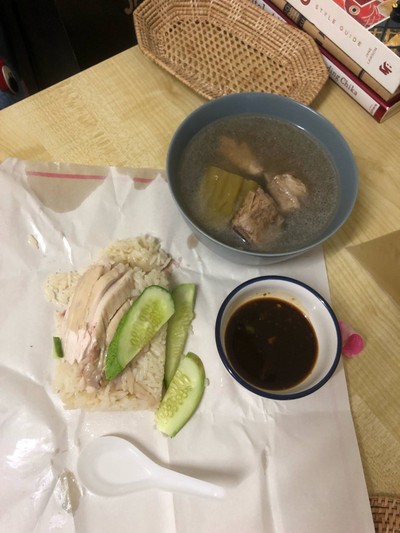 - สั่งธรรมดามา ปริมาณข้าวกับไก่ไม่ค่อยสมมาตรเลย55 แนะนำให้สั่งพิเศษ จะได้อิ่มแบบสมมาตร - ข้าวมันหอมข้าวมาเป็นเม็ดร่วนกำลังดี - ไก่นุ่ม แต่ได้ปริมาณน้อยไม่ทันได้สัมผัสรสชาติเลย - มาพร้อมแตงกวาสดให้ห่อ ขมเล็กน้อย -โดยรวมทานที่ร้านอร่อยกว่า - ตุ๋นมะระ รสชาติหอมเข้มข้น ขมเล็กน้อยแต่อร่อย มะระตุ๋นเนื้อนุ่ม ซี่โครงเปื่อยนุ่ม - ทานข้าวมันไก่ร้านทีไรต้องสั่งมาซดทุกครั้งดูเพิ่มเติม