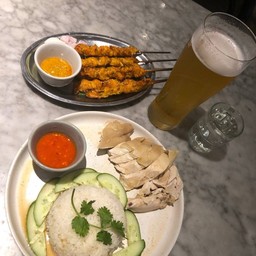 Rangoon Tea House ร้านอาหารบรรยากาศกึ่งบาร์ชื่อดังในย่างกุ้ง อาหารฟิวชันหลากหลายชาติ ทั้งพม่า จีน ไทย อินเดีย มาเลย์ ข้าวมันไก่ไหหนาน ข้าวมันไก่สไตน์จีนไหหลำ มีน้ำจิ้มเปรี้ยวแบบพริกน้ำส้ม สูตรของไหหลำเลย ข้าวมันจะไม่มันมาก แห้งๆ ไก่ตอนชิ้นใหญ่ๆ หนาๆ มีซอสราดบนไก่ จานนียังไม่ค่อยโดนเท่าไหร่ ไก่ไม่ค่อยนุ่ม ชิ้นหนาเกิน ซอสราดไก่ ข้าวมัน น้ำจิ้มใช้ได้ สะเต๊ะไก่ Signatureของร้าน ที่มาแล้วต้องสั่ง ช...อ่านต่อ