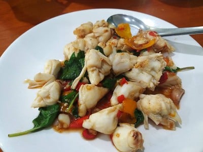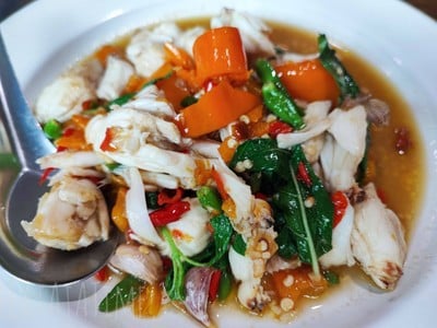 ไปธุระแถวๆกำแพงแสน เสิชดูแล้วเจอร้านนี้น่าสนใจ ก็เลยลองไปชิมค่ะ ตอนแรกไม่ได้คาดหวัง พอเห็นจำนวนรถในลานจอดเท่านั้นแหละ … คนเยอะมากค่ะ โชคดีว่ามีโต๊ะ และอาหารไม่ช้าเลย 🦀 กะเพราปูก้อน ตอนแรกจะไม่สั่งเพราะแม่ไม่กินปู แต่ในวงในทุกรีวิวแนะนำเมนูนี้ และปรากฏว่า ถ้าไม่สั่งเสียใจแย่ เป็นกะเพราในอุดมคติเลยอะ เผ็ดร้อน ไม่ใส่ซีอิ๊ว รสชาติลงตัวมาก ปูก้อนใหญ่หวานสดๆเลย 🎣 ทอดมันปลากราย หนุบหนับมากค่ะ เ...อ่านต่อ