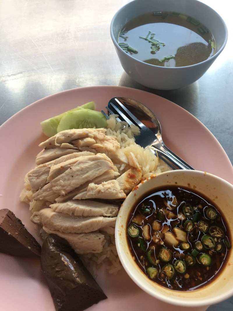 ข้าวมันไก่สตรีทฟู้ดของดีรัชดาซอย3 เด่นๆตรงเนื้อไก่นุ่มๆแน่นๆชิ้นใหญ่ไม่ขี้เหนียวของ ในจานมีเลือดไก่ชิ้นใหญ่ๆให้ด้วยนะ ข้าวมันหุงมานุ่มๆหอมอร่อย ให้เยอะ และที่นี่น้ำจิ้มข้าวมันไก่อร่อยมาก ใครอยากเติมพริกซอย ขิงซอยเติมได้ไม่อั้นตามอัธยาศัย น้ำซุปมาสไตล์ต้มมะนาวดอง รสชาติสดชื่น ใส่ฟักใส่เนื้อไก่ให้ด้วย เรียกว่ามานี่คุ้มสุดๆ ในราคาจานละ 50฿ เองดูเพิ่มเติม