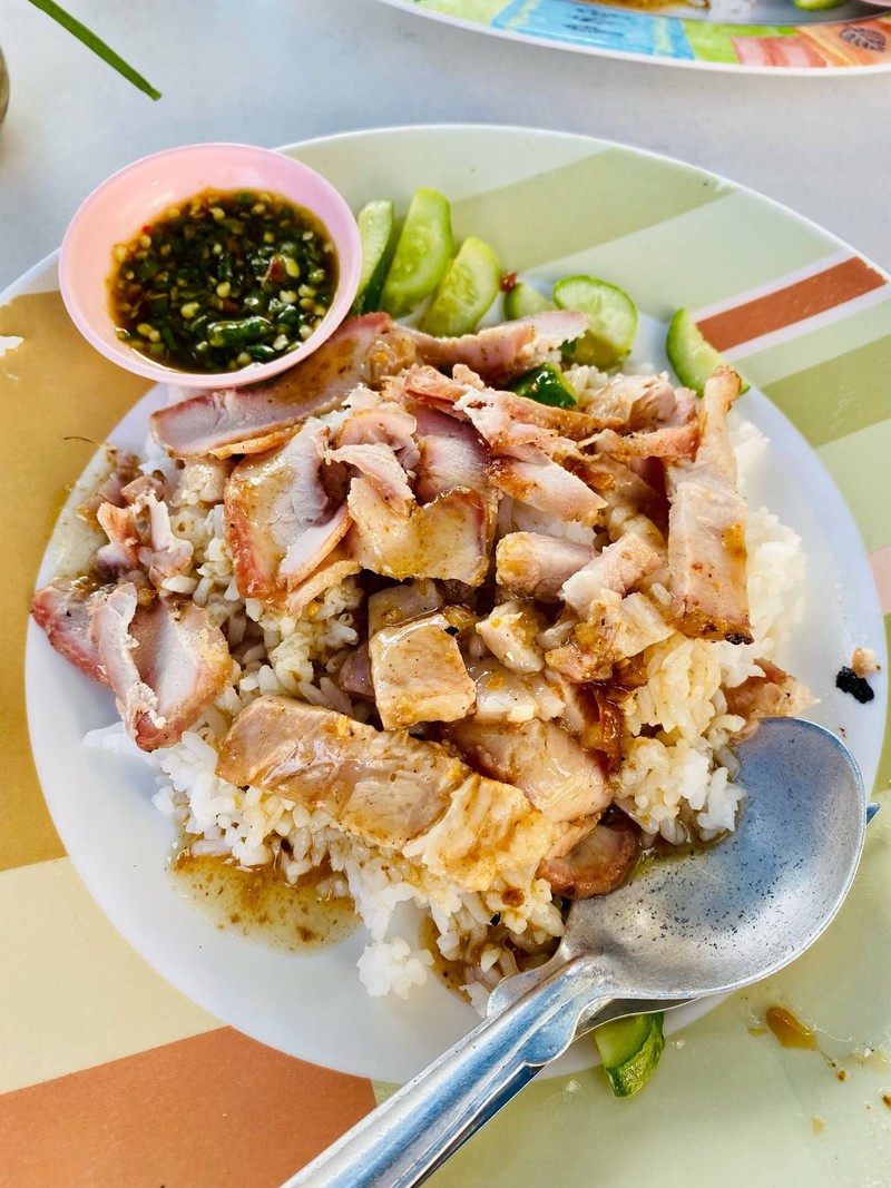 เจ้าเก่าดั้งเดิมเปิดหามาเจอโดยบังเอิญ บรรยากาศ - ร้านรถเข็นสตรีทฟู้ด อยู่ริมคลองใกล้ๆองค์พระปฐมเจดีย์ จอดรถริมถนน(ตรงที่ว่าง) โต๊ะเก้าอีกที่นั่งมีไม่เยอะ บางโค๊ะเริ่มผุพังแล้ว(realๆดี) คุณป้า อาม่าช่วยกันเตรียม สับ เสริฟ เก็บ ทำกันขยันขันแข็ง ตลอดเวลาตั้งแต่ผมไปถึงจะกลับก็ยังหั่นหมูไม่หยุด คือเชื่อว่าถ้ามาช้ากว่านี้อีกหน่อยคงหมด อดกินแน่ๆ ยิ่งวันนี้วันหยุดซะด้วย ลูกค้ามายืนรอซื้อก็เยอะ นั่งสั่...อ่านต่อ