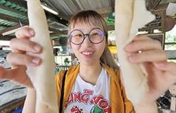 แวะซื้อที่ร้านมีให้ชิมด้วย แต่เราว่าเรียกกินเถอะ แป้งแผ่นใหญ่มากกกก แป้งหอมนุ่มเหนียวสดใหม่ น้ำตาลสายไหมก็หวานพอดี หอม อร่อยดีค่ะ แต่ต้องรีบกินเพราะแป้งเก็บหลายวันไม่ได้นะคะ (ตอนนี้ลองเอาแป้งแช่ตู้เย็นอยู่ ไม่รู้จะเป็นยังไงเหมือนกัน😁😁)ดูเพิ่มเติม