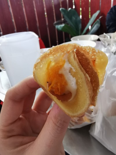 50% ของรีวิวบอกว่าร้านนี้เหมาะกับ ประหยัด!ร้่านรถเข็นที่มีขายขนมเบื้องกับขนมโตเกียว มีหลายไส้ให้เลือกสั่ง ส่วนตัวชอบขนมเบื้องมากกว่า ~ขนมเบื้องไส้หวานไส้เค็ม แป้งกรอบ ไส้ไม่หวานมาก กำลังดี ขนาดแผ่นขนมเบื้องกำลังดีทานพอดีคำ ~โตเกียว แป้งโตเกียวยังไม่โดน ชอบไส้สังขยาไข่มากกว่าสังขยาใบเตย โดยรวมรสชาติอร่อยดีค่ะ ทานเพลินๆฟินค่ะ พ่อค้าบอกว่าทุกอย่างพ่อค้าทำเองหมดเลยยกเว้นไส้สังขยาดูเพิ่มเติม