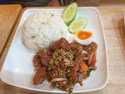 มาธุระแถวซอยประชาสงเคราะห์ จอดรถในวัด เดินข้ามฟากมากินร้านนี้ เห็นชื่อร้าน ว่ามีเล้งแซ่บ เลยสนใจ เป็นร้านห้องกระจกติดแอร์ มาถึงลูกค้าไม่มี เลยสั่งอาหาร เล้งแซ่บชามเล็ก แต่เวลามา ไม่เล็กอย่างที่คิด มีกระดูกให้มาตั้ง 4 อัน ใหญ่ๆ กินไม่หมด ต้องห่อ นอกจากนี้ สั่งบะหมี่ต้มยำน้ำข้นทะเล รสชาติพอใช้ได้ ส่วนลูกน้องมาด้วย สั่งข้าวยำหมูแซ่บ เป็นข้าวเปล่า โรยหน้าด้วย หมูทอด คลุกด้วยเครื่องลาบ รสชาติจี๊ดจ๊าดดีดูเพิ่มเติม