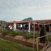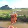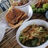 อาจจะเพราะมาสายไปหน่อยรึเปล่า ร้านเริ่มน้อยละ โจ๊กเพิ่งหมดไปหมาดๆ เหลือแต่ร้านไก่ทอด กับร้านขนมจีน ก็เลยลอง เอาไก่ทอดสมุนไพรมากินกับขนมจีน ราคาไม่แพง ขายโดยชาวบ้านแถวนั้นเป็นยายๆ ก็ใช้ได้นะนั่งกินชมบรรยากาศดูเพิ่มเติม