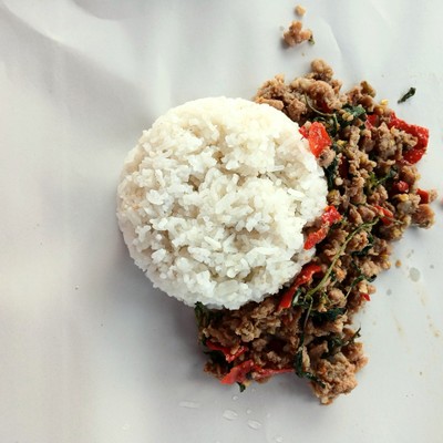 ข้าวเด็กนางรอง (กระเพรากรอบพริกแห้ง)
