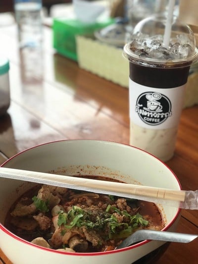 ร้านตั้งอยู่ถนนหลัก มุ่งไป กทม. เลยจุดพักรถทัวร์มานิดหน่อย เมนูอาหาร มี ก๋วยเตี๋ยวต้มยำ ข้าวหมูแดง และอาหารตามสั่ง เมนูนำ้ กาแฟ น้ำหวาน ขนมปังปิ้งก็มีนะจ้า วันนี้ สั่ง เมนู นี้ทาน -ก๋วยเตี๋ยวเส้นเล็กต้มยำ -ขลุกขลิกกระดูกอ่อน : เป็นเมนู เส้นบะหมี่ต้มยำ ใส่น้ำน่ำแบบพอดีเส้น ปรุงใส่พริก ถั่ว นิดหน่อย อร่อยย **แนะนำให้สั่งขลุกขลิกมาทาน เพราะจะได้กระดูกเปื่อยมาทานด้วย แฟนเราสั่งมาอีกชาม...อ่านต่อ
