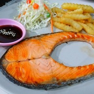 ช่วงนี้หิวเมื่อไหร่ก็เปิดแอพสั่งตลอด เมื่ออยากกินสเต๊กแล้วเปิดมาเจอร้านนี้ เห็นราคากลางๆ เมนูให้เลือกเยอะดี -สเต๊กปลาดอลลี่ & ไส้กรอก (149.-): ปลาย่างมากำลังดี แต่แอบมันๆไปหน่อย ไม่รุ้มันจากน้ำมันกระทะหรือซอสค่ะ -สเต๊กปลาแซลม่อนย่าง(159.-) ปลาชิ้นใหญ่ดี รสชาติกลางๆ ถือว่าคุ้มค่ากับราคาอยู่ค่ะ แล. สามารถใช้สวัสดิการรัฐผ่านไลน์แมนได้ค่ะดูเพิ่มเติม
