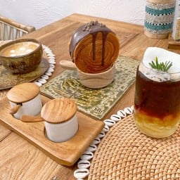 คาเฟ่สไตล์บาหลีตกเเต่งสวยบรรยากาศดีเเอร์เย็น วันนี่สั่งเครื่องดื่มมา2อย่าง เป็นชาเขียวเย็นกับยูสุเลม่อนโซดา ชาเขียวรสชาติค่อนข้างอ่อนไปหน่อยกลิ่นไม่ชัด ส่วนยูสุเลม่อนทั่วไปตามมาตรฐาน ไฮไลท์คือขนมเครมบูเล่มะพร้าว ร้านน่าจะอบสุกไปเยอะเลยเนื้อข้างในมีฟองอากาศค่อนข้างเยอะกลายเป็นไจ่ตุ๋นไปเลยดูเพิ่มเติม