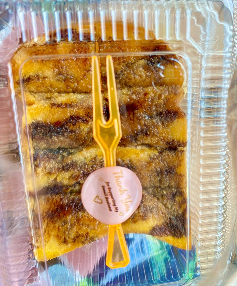 ขนมปังปิ้งกรอบๆ 1 แผ่น หอมกลิ่นเนย ราดซอสช็อกโกแลต และนมข้นหวาน ฟินสุดๆๆ