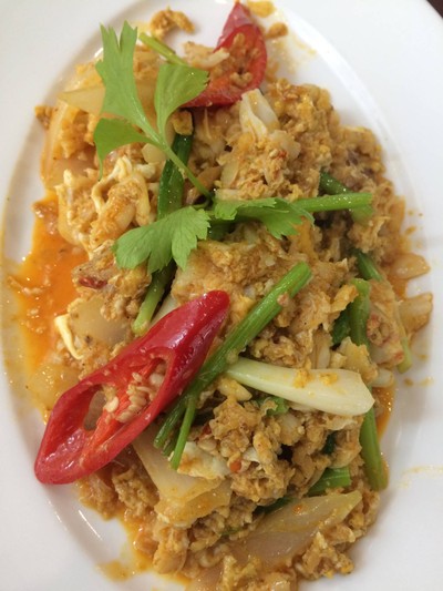 สั่งจาก คนละครึ่ง เนื้อปูก้อนผัดผงกระหรี่ 320 บาท จ่ายไป 170 บาท จานนี้ ปูก้อนใหญ่ เนื้อสด หวาน รสชาติดี วัตถุดิบดี ผัดมาแนวผงกระหรี่แบบจีน รสชาติจะนวลๆ ใส่ไข่ กินกับข้าวสวยอร่อยมาก ปริมาณเยอะ ต้องแบ่งกินเป็น 2 มื้อดูเพิ่มเติม
