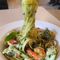 เพื่อนพามากินร้านนี้เพราะใกล้และอร่อย ที่ชอบมากคือ สเต็กซี่โครงแกะ น้ำซอสอร่อยทั้งน้ำจิ้มแจ่วและมิ้นท์ซอส เพื่อนสั่งซุปกุ้ง เราสั่ง ซีซ่าสลัด สเต็กซี่โครงแกะ และพิซซ่าหน้าซีฟู้ดและซอสเห็ดทรัฟเฟิล สเต็กเนื้อนุ่มไม่มีกลิ่นและไม่เหนียวอร่อย พิซซ่าหน้าซีฟู้ดและซอสเห็ดทรัฟเฟิล รสชาติกลางๆแบบฝรั่งแป้งบางกรอบ ก็อร่อยดี กินกันไม่หมดเพราะพิซซ่าถาดใหญ่ สนนราคา ทั้งหมด 2000 นิดๆดูเพิ่มเติม