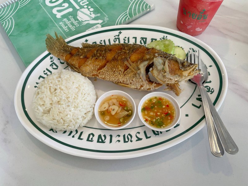 ร้านนายอั๋นเป็นร้านอาหารทะเลแบบจานเดียวและอาหารตามสั่งหลากหลาย เมนูเยอะมากมาย ร้านอยู่ติดกับร้านติ่มซำโกอั๋นอาหารเช้า วันนี้ลองสั่งข้าวปลากระพงทอดมาทาน ปลามาแบบทั้งตัวเต็มๆ ตัวกำลังดีไม่เล็ก ทอดได้ดีไม่เหม็นน้ำมัน กินกับน้ำจิ้มซีฟู้ดดีงามครับดูเพิ่มเติม