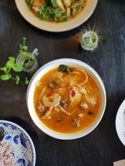 ร้านอยู่ลึกสุดซอยในตลาดยิปซีตกแต่งแบบสไตล์บ้านสแกนดิเนเวียมีต้นไม้หลากหลายในร้าน ร้านตกแต่งสวยมากๆแนวมากๆ ทั้งร้านมี 2 โต๊ะ รับคนได้ไม่น่าจะเกิน 10 คน อาหารเป็นแนวอาหารไทยกินง่ายๆเหมือนกินข้าวที่บ้าน พี่ปุ๊ทำคนเดียวทั้งอาหารและเก็บล้าง อาหารค่อนข้างรสจัดเข้มข้นต้มยำปลาทูปลาทูสดมากเนื้อดีรสชาติต้มยำเผ็ดจัดจ้านอร่อยมาก หมูก้อนชุบไข่เจียวแปลกไม่เคยกินแต่อร่อยไข่กรอบๆ กัดไปเจ...อ่านต่อ