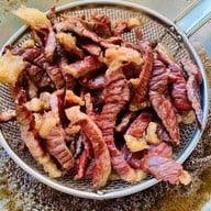 ครัวชาววิเสท เป็นร้านที่รับ delivery อย่างเดียวไม่มีหน้าร้าน เผอิญอยู่แถวบ้าน เห็นใน Wongnai มีให้สั่ง แถมมีโปรค่าส่ง 29 บาทด้วยเลยลองดู อาหารส่วนใหญ่เป็นอาหารไทย เน้นข้าวจานเดียวและกับข้าว ลองสั่งมา 4-5 อย่างคือ - หมูทอดวิเสท อันนี้อร่อยดี หมูชิ้นใหญ่แต่ไม่เหนียว ชุบแป้งเล็กน้อยพอกรุบกรอบ ทอดมาใหม่ๆ อร่อยใช้ได้ กินได้เลยแบบไม่ต้องมีน้ำจิ้ม - ข้าวผัดหมูแดดเดียว เอาน้ำมันหมูไปผัดข้าวแล้วโปะหม...อ่านต่อ
