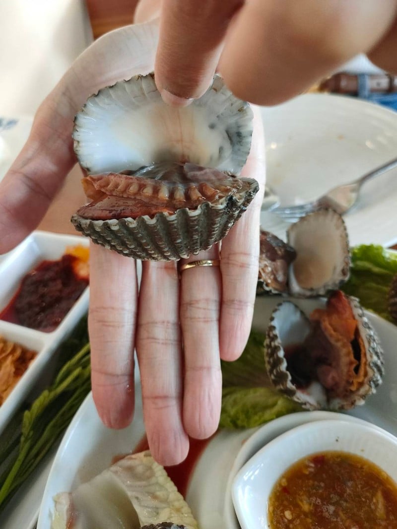 ไฮไลต์ของร้านที่น่าจะโดดเด่นสุด ๆ ไปเลยนั่นก็ คือ อาหารทะเลแบบจัดเต็ม โดยเฉพาะปูม้านึ่งที่ทางร้านได้นำปูสด ๆ มานึ่ง แล้วแกะให้ลูกค้ากินแบบมือไม่เลอะกันเลยทีเดียว ใครที่รู้ตัวว่าชอบกินปูแต่ขี้เกียจแกะ ลองมาสักครั้งจะประทับใจอย่างแน่นอน พร้อมจะลุยกันมานานแล้วกับเมนูพระเอกของทางร้าน ปูม้านึ่ง 700-800 บาท(ราคาแล้วแต่ขนาด) เห็นเมนูนี้ตอนแรกตกใจมาก มันเยอะจริง ๆ กินกันไม่หมดแน่นอน แกะมาได้สะอาด เรียบ...อ่านต่อ