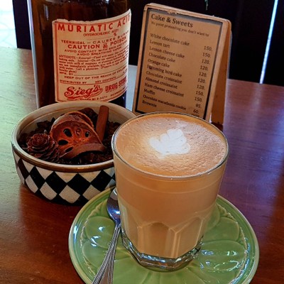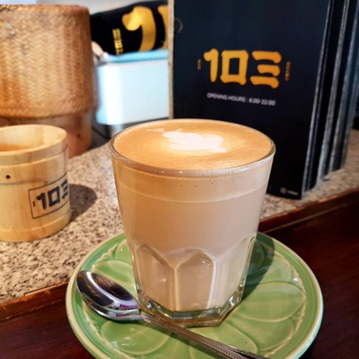 ร้านนี้เป็นโรงแรมขนาดเล็ก ตอนเช้าจะมีอาหารเช้าให้กับแขกที่เข้ามาพักด้วย ซึ่งชั้นล่างก็เปิดเป็นคาเฟ่ ขายกาแฟและขนม น้องปอบมาสั่งลาเต้ร้อน 1 แก้ว 110 บาท ราคาค่อนข้างแรงเลยค่ะ กาแฟลาเต้รสชาติหวานนมดี เทลวดลายลาเต้อาร์ตมาแต่พองาม กาแฟกลิ่นหอมใช้ได้ รสชาตินุ่มนวลดีค่ะดูเพิ่มเติม