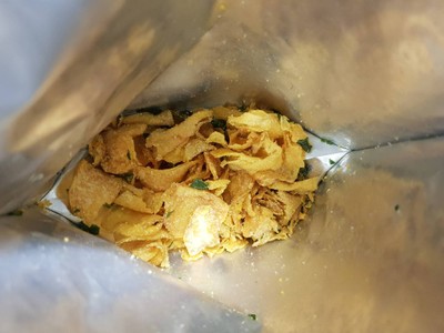 เป็นขนมทานเล่น ที่เน้นผงไข่เค็ม มีให้เลือก 2 ขนาด ขนาดเล็ก 8 SGD ขนาดใหญ่ 15 SGD เท่าที่เห็นมีทั้งหมดสามแบบ แบบ potato chips (อันนี้หลังจากเปิดครั้งแรกถ้าเก็บไว้ จะมีน้ำมันเยิ้มออกมา) , casava chip (อันนี้จะแข็งกว่าแบบ potato นิดหน่อย แต่กินนานๆแล้วเพลินกว่า), หนังปลากรอบ(จะเน้นรสหนังปลา ถ้าใครชอบกินหนังปลาที่โรยในก๋วยเตี๋ยวเรือน่าจะเลิฟมาก)ดูเพิ่มเติม