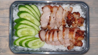 ข้าวหมูสามชั้นทอด (2 ขีด)