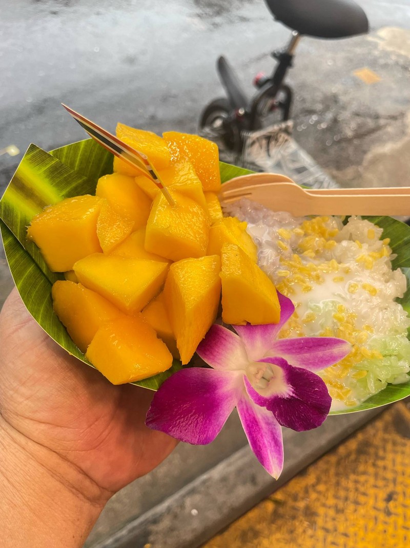 ร้านขนมหวานที่เน้นเมนูผลไม้อย่างมะม่วง ทุเรียน โดยมีทั้งข้าวเหนียว ไอศครีม สั่งข้าวเหนียวมะม่วง 1 กระทง (80 บาท) ข้าวเหนียวมี 3 รส คือขาวธรรมดา, อัญชัน และใบเตย ผสมกันในกระทง มะม่วงหวานดีครับ ส่วนข้าวเหนียวหุงดี นุ่ม ราดน้ำกะทิ หวาน ชุ่มดี ร้านอยู่ตรงโครงการ 12 ในตลาดนัดสวนจตุจักรดูเพิ่มเติม