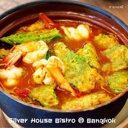 วันนี้มาทานอาหารร้าน Silver House ร้านนี้ตั้งอยู่ในสโมสรของหมู่บ้าน ด้านนอกก็เก่าๆโทรมๆ ตามอายุของสโมสร แต่ด้านในตกแต่งสวยดีค่ะ มีหลายโต๊ะให้เลือกนั่ง เมนูไม่เยอะมาก แต่ก็ไม่น้อยเกินไป สำหรับอาหารที่ได้สั่งวันนี้ ผัดผักรวมมิตร รสชาติมาตรฐานค่ะ ปูผัดผงกระหรี่ อร่อยดีค่ะ ไม่เลี่ยน ไม่มันเกินไป แกงส้มชะอมทอดกุ้ง อร่อย เข้มข้น รสชาติใช้ได้ค่ะ ส้มตำเส้นทอด อันนี้แปลกๆ เพราะไม่ได้เอาเส้นมาทอด...อ่านต่อ