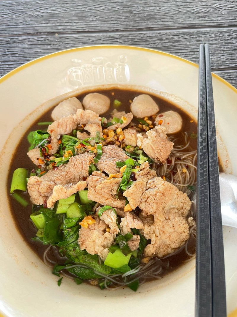 ร้านที่ขายทั้งก๋วยเตี๋ยวเรือที่มีทั้งเนื้อหมู เนื้อวัว ความเผ็ดมี 3 ระดับ คือเผ็ดน้อย เผ็ดปกติ และเผ็ดมาก รวมถึงมีข้าวราดกะเพราต่างๆ ขายด้วย สอบถามว่าทำไมถึงใช้ชื่อร้านก๋วยเตี๋ยวเรือยาง ได้ความว่าเพราะเจ้าของร้านขายยางรถยนต์ด้วย (ร้านอยู่ใกล้กัน) สั่งเส้นหมี่เนื้อหมูชามใหญ่ ความเผ็ดปกติ (60 บาท) น้ำซุปแม้เข้มข้นแต่ออกหวานไปหน่อย เนื้อหมูดี นุ่ม ชิ้นโต ลูกชิ้นก็ โอเค. ร้านก๋วยเตี๋ยวเรือยาง...อ่านต่อ