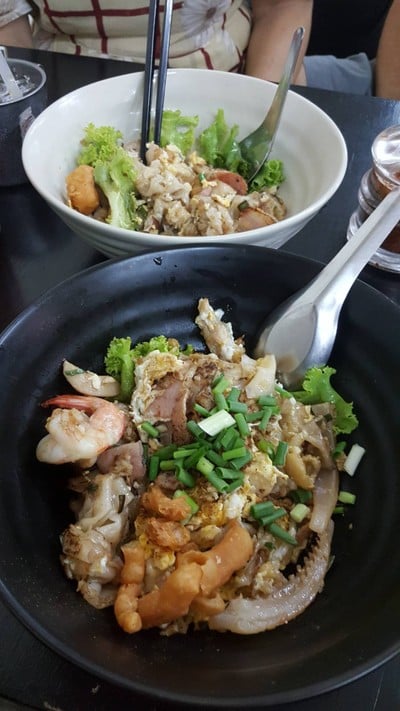 เป็นอีกร้านย่านตลาดพลูที่คิวยาว เพราะนอกจากลูกค้าในร้านแล้วยังมีคิวซื้อกลับบ้านยาวเหยียด สั่งก๋วยเตี๋ยวคั่วไก่ (50 บาท) ผัดมาได้แห้งกำลังดี ไข่เคลือบเส้นใหญ่นุ่มๆ เนื้อไก่ชิ้นโตพอประมาณที่นุ่มอร่อยเช่นกันดูเพิ่มเติม