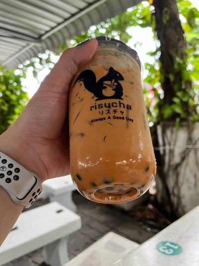 Risucha ขายหน้าร้านข้าวแกงใต้ ในหมู่บ้านเศรษฐกิจ14 ร้านน้ำชง Risucha เครื่องดื่ม 20 บาททุกเมนู ไม่รวมท็อปปิ้ง มีชาผลไม้ ชาใส่นม โกโก้ กาแฟ อิตาเลี่ยนโซดา เราสั่งชาไทยไข่มุก ชาไทยไม่ค่อยหอม รสกลางๆ ไข่มุกนิ่มไปหน่อย แม้เรามาซื้อตอนเช้า ทางร้านอาจจะต้มและอบนานไป #WongnaiDessertDrinkSpecialist #ThaiTeaSpecialist #BobaFruitTeaSpecialist ดูเพิ่มเติม