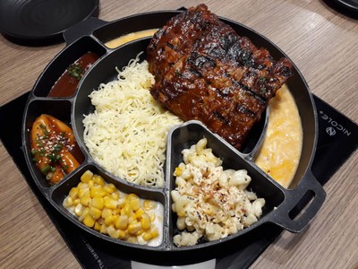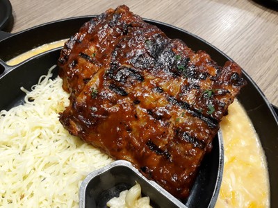 เรากินโปร 399+ ราคานี้มีน้ำด้วยนะ บริการดี อาหารไม่ช้า เสียแต่ไม่ค่อยมาเติมน้ำรีฟิลเลย ราคานี้ถ้ากินซี่โครงเยอะๆ ถือว่าคุ้ม แต่ถ้าเป็นผู้หญิงกินน้อย มันก็ไม่ค่อยคุ้มอ่ะ • ซี่โครงหมูออริจินอล ชิ้นโตเนื้อนุ่ม เอาส้อมแงะก็หลุดจากกระดูกแล้ว รสชาติแบบหมักซ้อสมา พอมาพันกับชีสร้อนๆก็อร่อยดี • ซี่โครงหมูบาบีคิว เหมือนข้างบน ต่างแค่มีซ้อสบาบีคิวเพิ่มมา • ซี่โครงหมูรสลาบ ก็เหมือนข้างบน เพิ่มเติมคือผ...อ่านต่อ