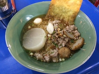 ก๋วยเตี๋ยวหมู เส้นต่าง ๆ น้ำใส ต้มยำ และก๋วยจั๊บญวน เป็นร้านรถเข็นขายช่วงเย็น ตามวันทำงานของธนาคารออมสิน ซึ่งเป็นลูกค้าเป้าหมาย บะหมี่ต้มยำ มีหมูชิ้น หมูบด ลูกชิ้น เป็นเครื่อง น้ำซุปใส่หัวผักกาด หอมหวาน อร่อยกินเพลิน อิ่มได้อีก 1 มื้อ เคยซื้อบะหมี่แห้งกินที่บ้าน ปรุงรสและเครื่องอร่อยลงตัว ติดใจอยากลองต้มยำบ้าง ไม่ผิดหวัง ขอบอกไว้เลยดูเพิ่มเติม