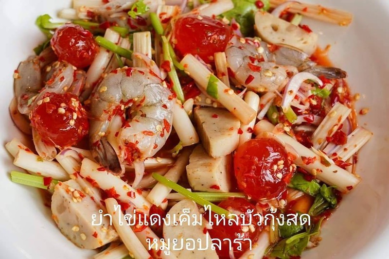 ยำไข่แดงเค็มไหลบัวหมูยอกุ้งสดไม่ปลาร้า