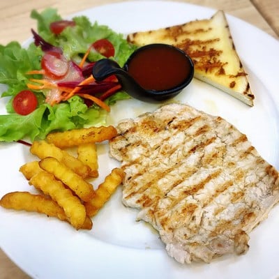บรรยากาศทางร้านดีมากๆเลย มีแอร์สบาย เมนูอาหารมีทั้ง คาวหวาน ชอบมากๆ คือสเต๊กหมูพริกไทยดำ รสชาติเต็มคำ น้ำจิ้มแจ๋วคือแซ่บ และอีกอย่างที่ชอบคือ เค็กช็อกหน้านิ่ม ละมุน รสชาติคืดดีลงตัว ไม่หวานมากดูเพิ่มเติม