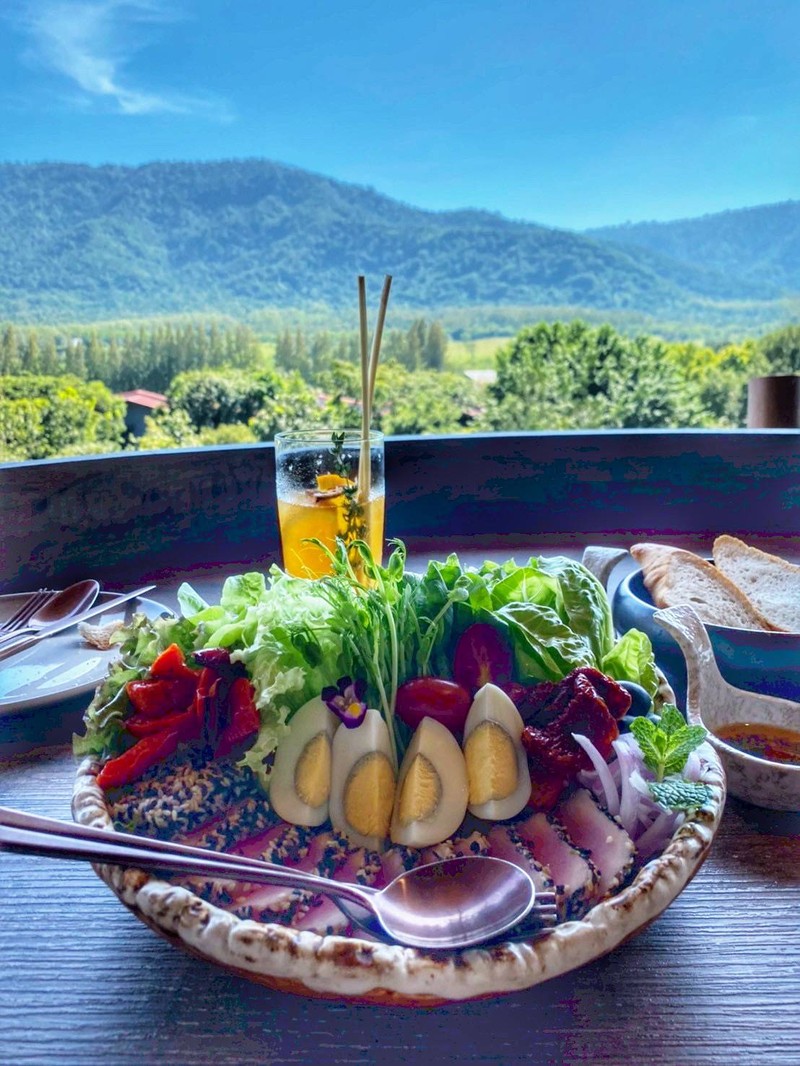 100% ของรีวิวบอกว่าร้านนี้เหมาะกับ เพื่อนฝูงมาพักที่โรงแรมดุสิตดีทูเขาใหญ่ ก่อนถึงทางเข้าโรงแรม จะมีเหมือนหอคอยใหญ่ๆเป็นไม้ไม้สะดุดตามาแต่ไกล เลยลองถามพนักงานโรงแรมบ้านคืออะไรพนักงานแจ้งว่าเป็นร้านอาหารของเครือโรงแรม ตัวร้านอาหารจะตั้งอยู่บนชั้น 3 กดลิฟท์ขึ้นไป วันที่ไปลมกำลังเย็นสบายเห็นวิวเขาใหญ่และต้นไม้เขียวๆสบายตาสดชื่นมากๆ ร้านจะมีทั้งโซนด้านนอกและส่วนของที่เป็นห้องแอร์ ระหว่างดูเมนูทางร้านมีเสริฟขนมปังต่างๆ เป็น appetizer ฟรี ตั...อ่านต่อ