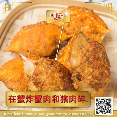 ร้านอยู่ต้นซอยรามคำแหง 24 วันนี้เลือก ชิม 2 อย่าง หอยจ๊อเนื้อหน้าอกปู เส้นละ 80 บาท ปูจ๋า ชิ้นละ 35 บาท 3 ชิ้นร้อย คิดค่าทอดชิ้นละ 5 บาท ชอบตรงที่เนื้อแน่น รสชาติดี หอมกลิ่นกระเทียมพริกไทย ปูจ๋าเนื้อปูเยอะมาก ยิ่งกินตอนร้อนๆ อร่อยที่สุดดูเพิ่มเติม