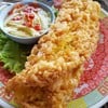 จองที่พักแถวๆหาดเจ้าสำราญ เดินๆแถวๆโรงแรมมาหาอะไรทาน จนมาเจอร้านนี้ ดูร้านกว้างขวาง บรรยากาศดี ติดริมทะเล นั่งกินข้าวฟังเสียงคลื่น ลมทะเลพัดมาตลอด ไข่เจียวปู 250.- ไข่เจียวกรอบๆแต่ปูด้านในเป็นฝอยๆ ไม่ค่อยสด สีแบบช้ำๆ ไม่ได้เป็นก้อนๆ ขาวๆ แน่นๆ แบบที่คิดไว้ มาพร้อมน้ำราด ติดหวาน หวานมากๆ หมึกนึ่งมะนาว เสิร์ฟมาร้อนๆ จานใหญ่ แต่น้ำราดขมมากๆ น่าจะเป็นเพราะน้ำมะนาว รสชาติเ...อ่านต่อ