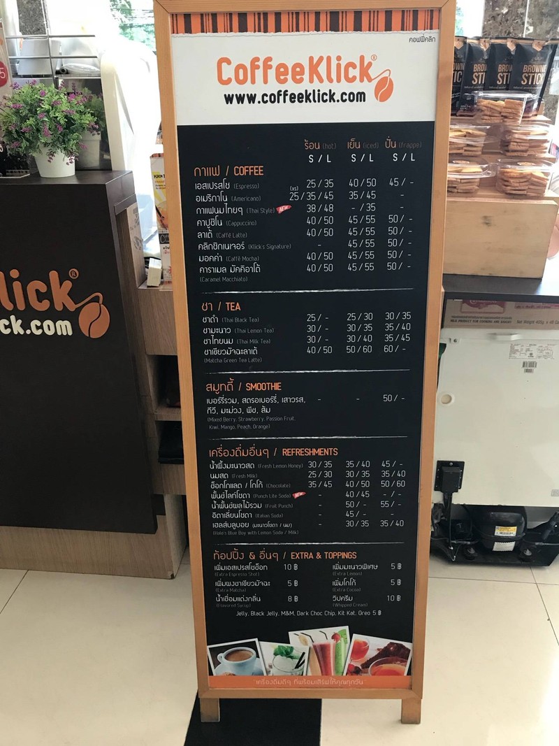 ร้านนี้กาแฟเล็กๆ ในตึก Vorawit ตรงถนนสุรวงศ์ ออกจะเป็นแนว kiosk มากกว่าร้าน แต่มีเมนูหลากหลายใช้ได้ น้ำชงแนวชา-กาแฟมีครบ กาแฟสด กับน้ำปั่นก็มี ชงรสชาติใช้ได้ ราคาไม่แพง ขายตั้งแต่เช้าถึงประมาณบ่ายสามก็จะเริ่มทยอยเก็บร้านแล้ว คือถ้าหลังบ่ายสาม ก็ยังมีขายอยู่ แต่บางเมนูอาจจะไม่มีเพราะเค้าปิดเครื่องทำกาแฟแล้ว ส่วนเมนูแนะนำของร้านนี้คือ Klick's Signature เป็นกาแฟลาเต้ที่ใส่ทั้งนมสดและนมข้น ก็อร่อ...อ่านต่อ