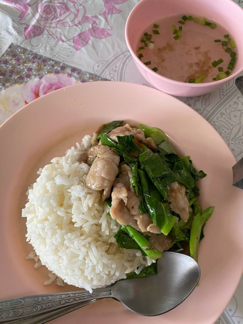 #WhoscallxWongnai ร้านปราณี อาหารตามสั่ง มีทั้งอาหารตามสั่งทั่วไป ข้าวหมูแดง หมูกรอบ หรือก๋วยเตี๋ยวก็มี สั่งเป็นคะน้าหมูชิ้น เสริฟมาพร้อมน้ำซุปถ้วยเล็กๆ รสชาติดี หมูนุ่ม ผักอร่อย รอไม่นานมาก ปริมาณกลางๆดูเพิ่มเติม